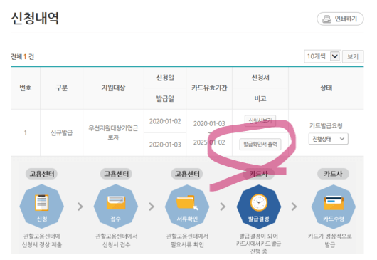 발급확인서를 출력합니다.
