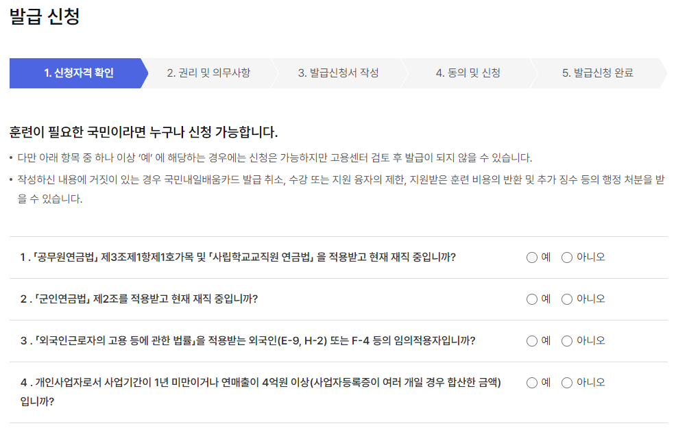 내일배움카드 발급 자격